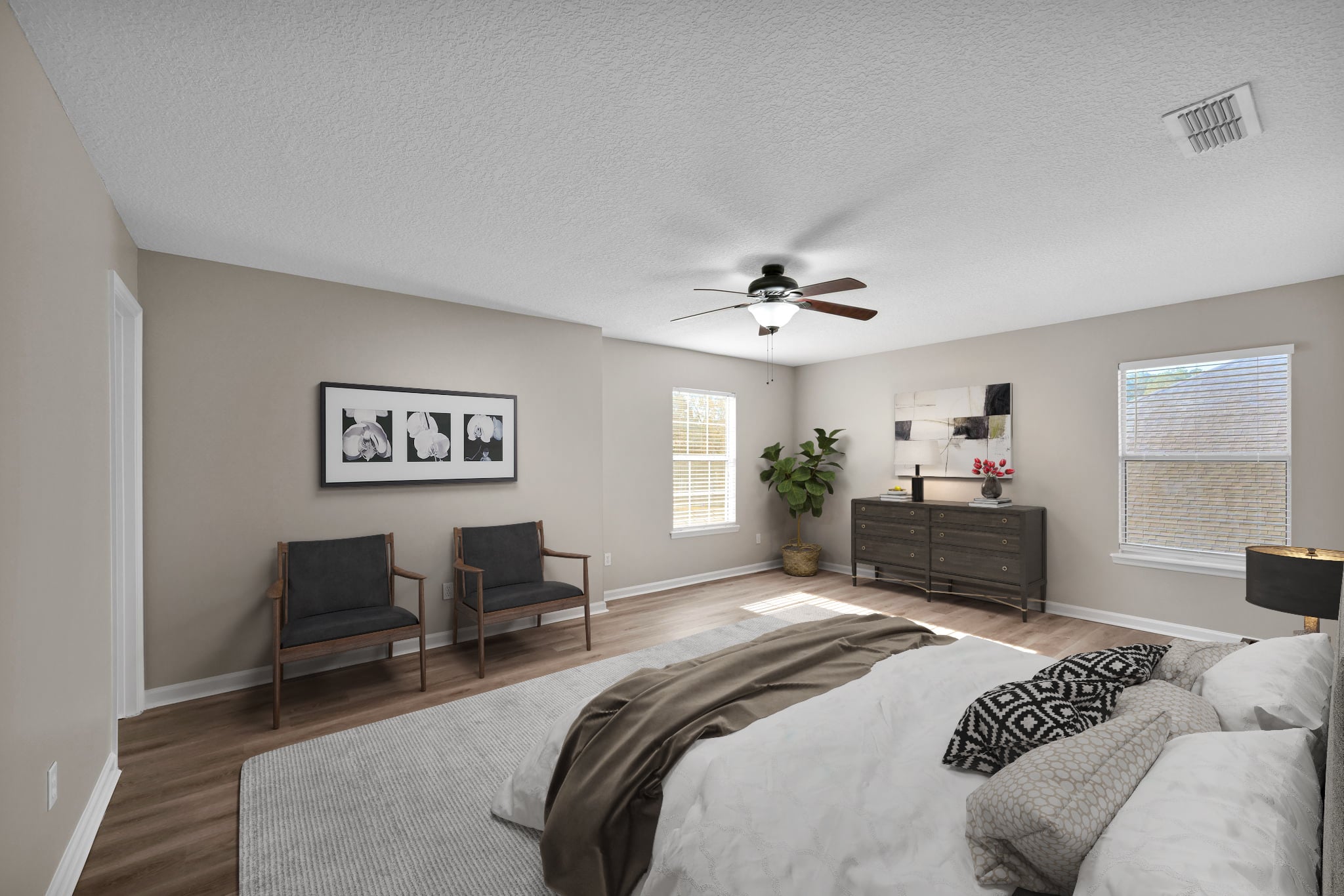 Spacious 2-story home in the Watermill neighborhood offering 5 bedrooms, 3.5 baths, and 3,239 square feet of living space. The open floor plan provides flexibility with separate living and family rooms for added versatility. The first-floor owner's suite offers convenience with a pond view and quick access to the garage and laundry room. Enjoy pond views from the covered back patio with a fenced yard and good sized lot. A welcoming front porch enhances curb appeal, and the 2-car garage provides ample storage and parking. Conveniently located near schools, shopping, and local amenities. Take a look today!